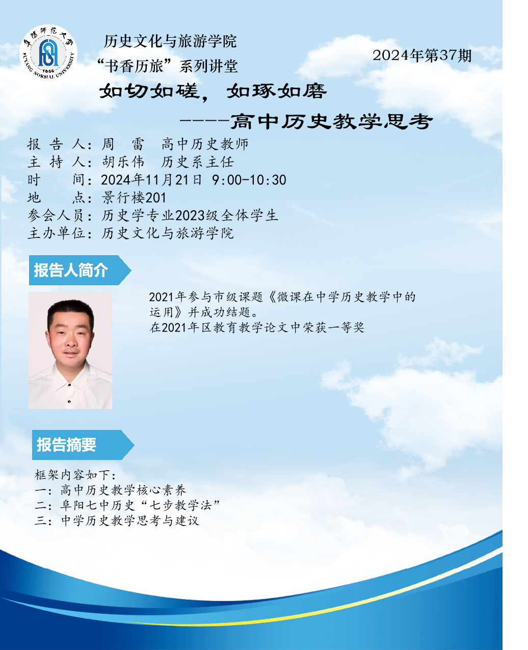 “书香历旅”系列讲堂2024年第37期:如切如磋,如琢如磨--高中历史教学思考
