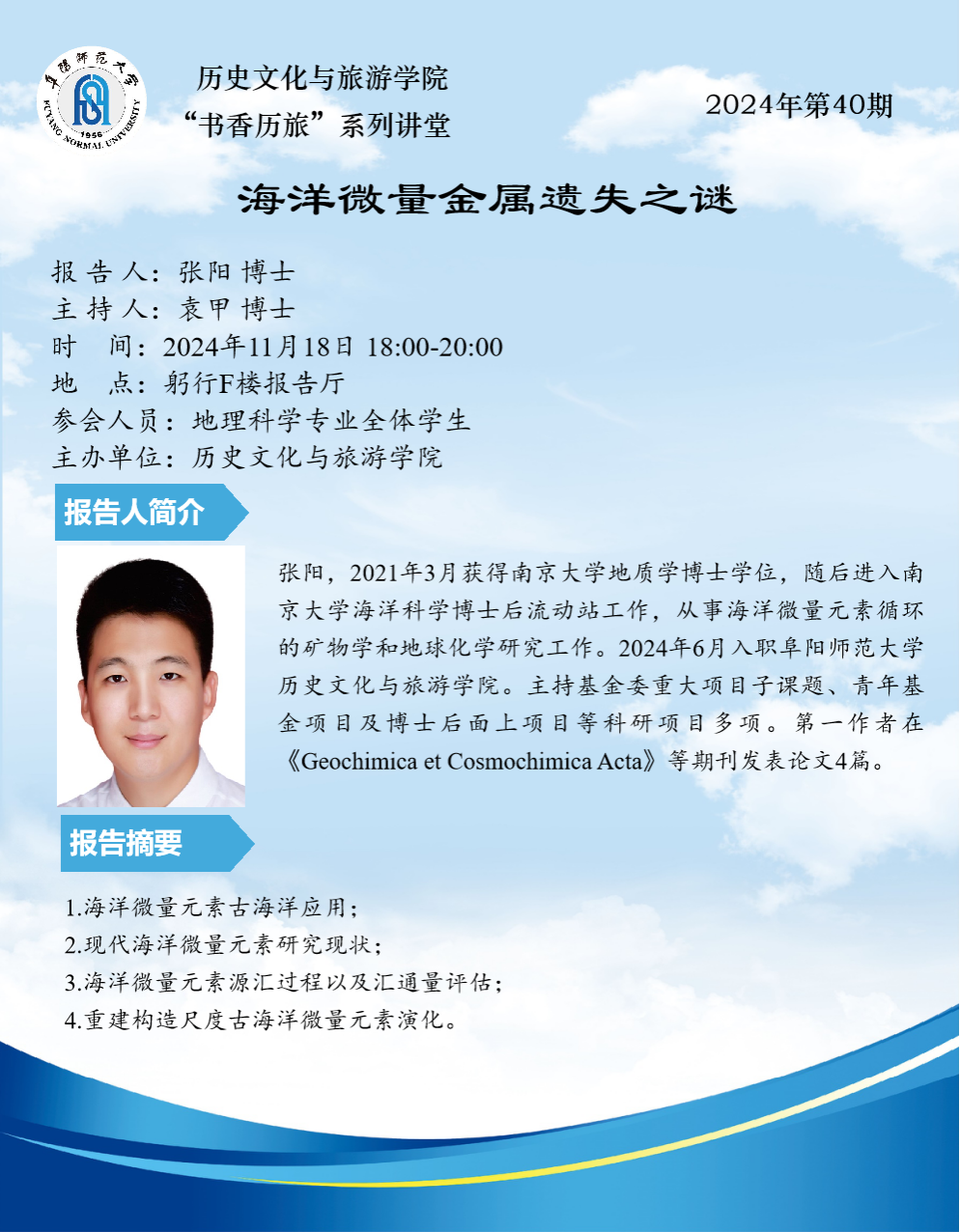“书香历旅”系列讲堂2024年第40期:海洋微量金属遗失之谜