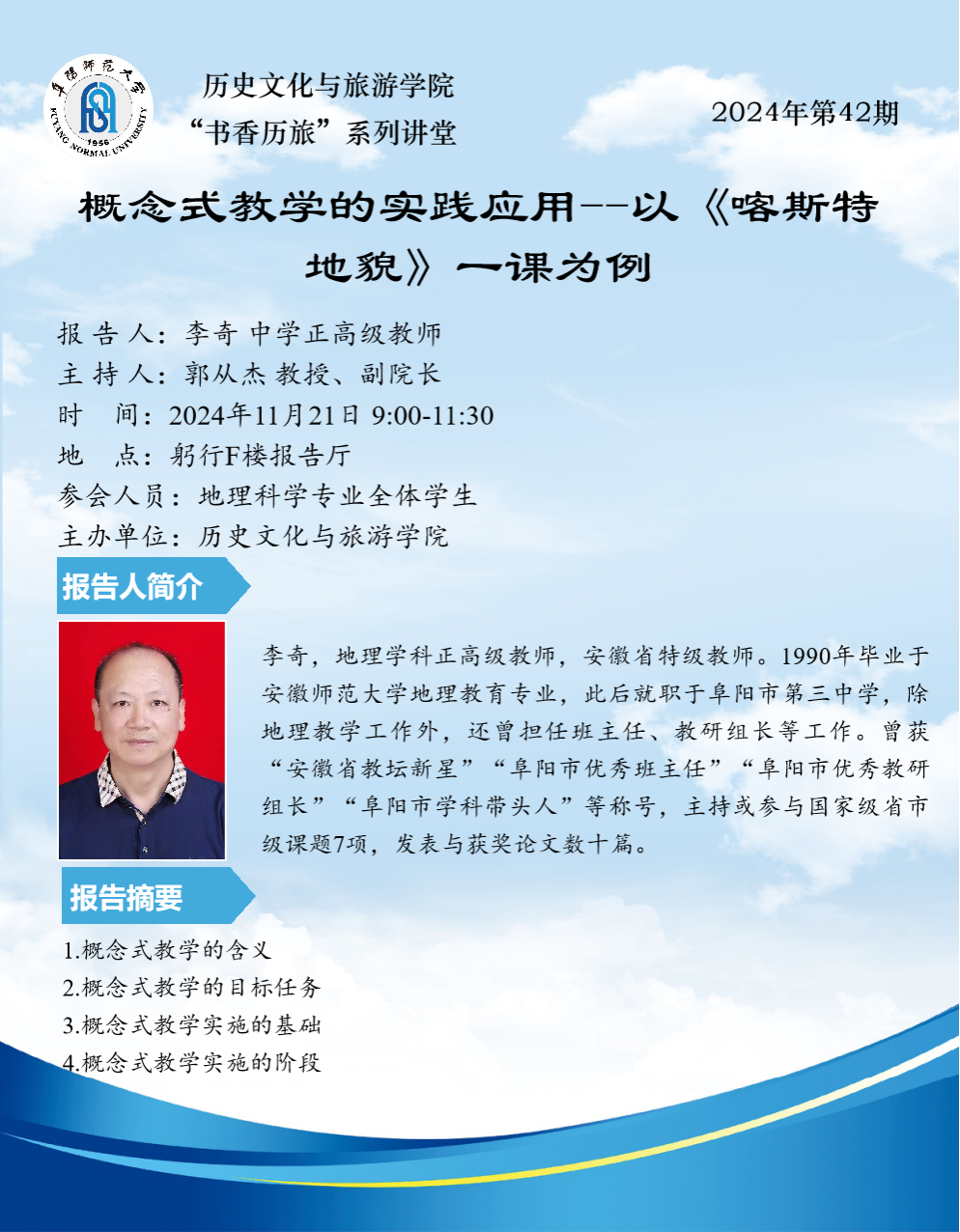 “书香历旅”系列讲堂2024年第42期:概念式教学的实践应用--以《喀斯特地貌》一课为例