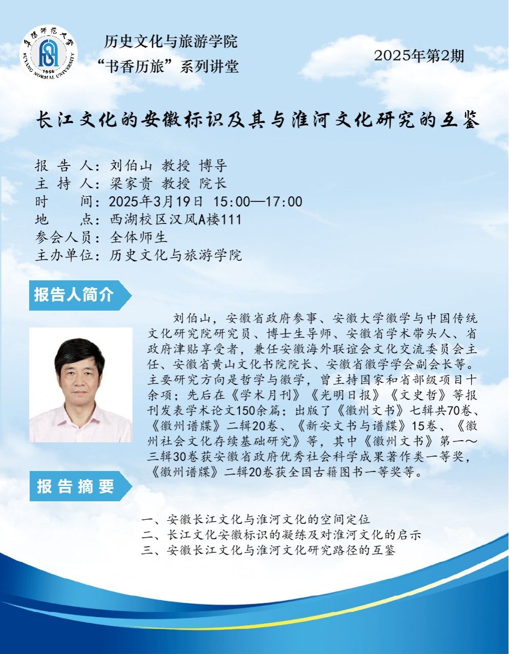 “书香历旅”系列讲堂2025年第2期:长江文化的安徽标识及其与淮河文化研究的互鉴