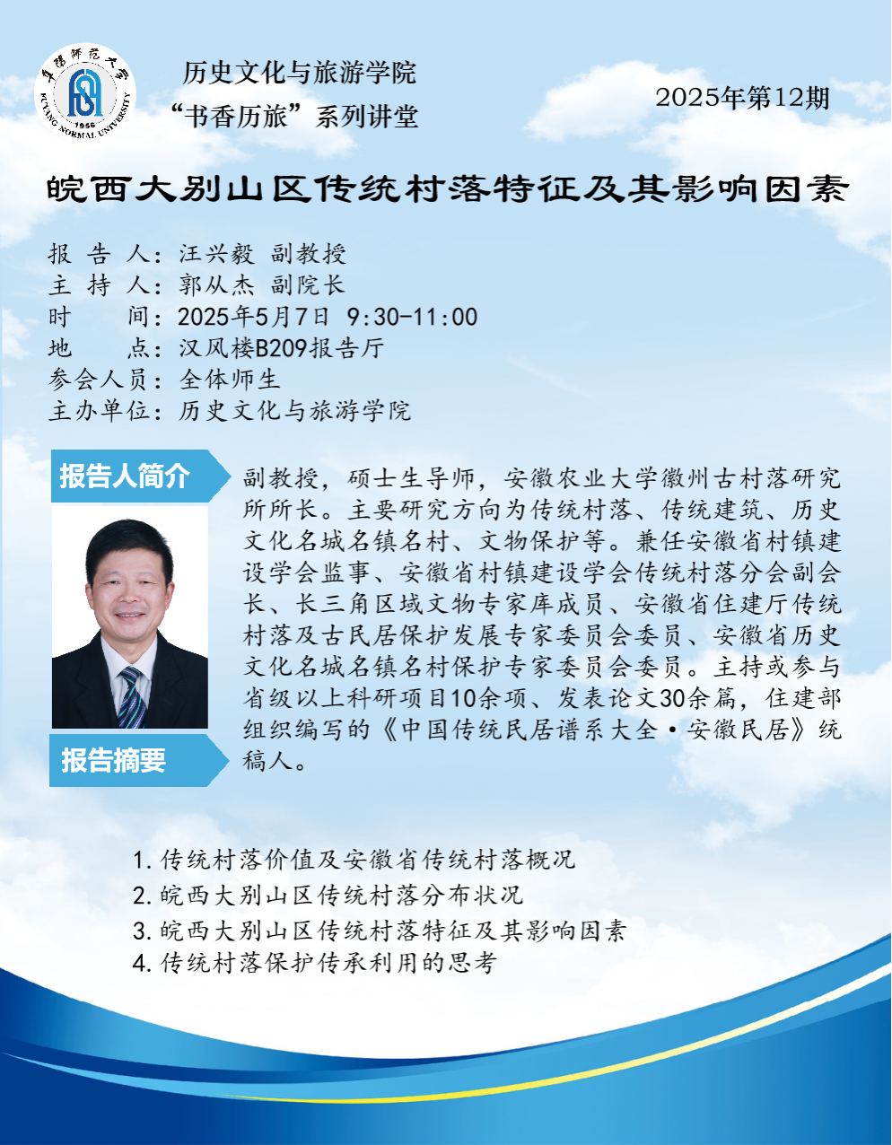 “书香历旅”系列讲堂2025年第12期:皖西大别山区传统村落特征及其影响因素