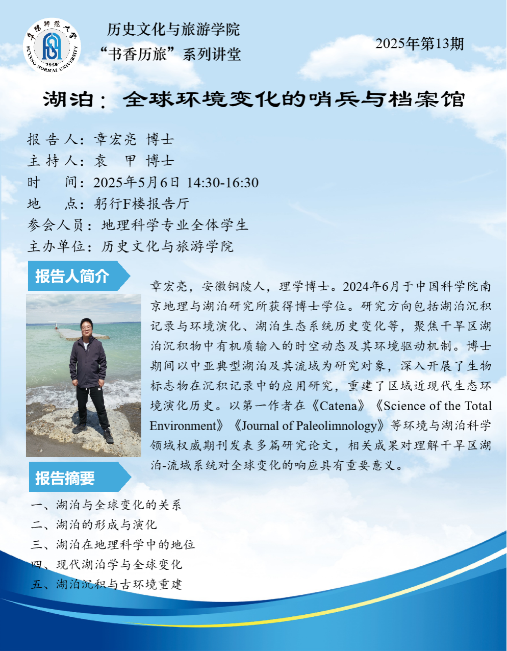 “书香历旅”系列讲堂2025年第13期:湖泊:全球环境变化的哨兵与档案馆