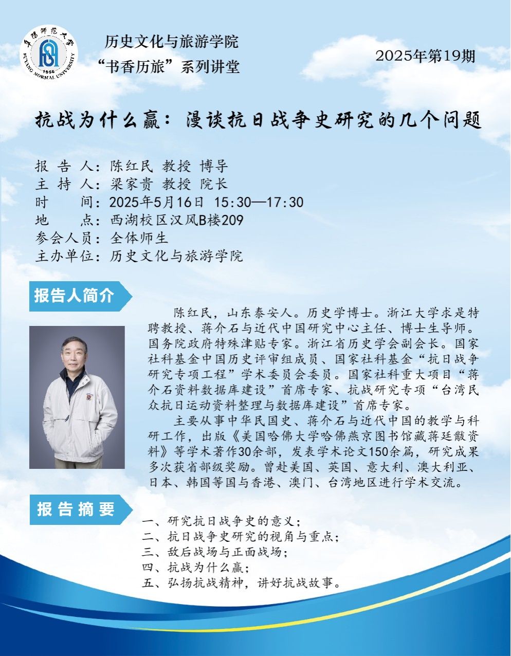 “书香历旅”系列讲堂2025年第19期:抗战为什么赢:漫谈抗日战争史研究的几个问题