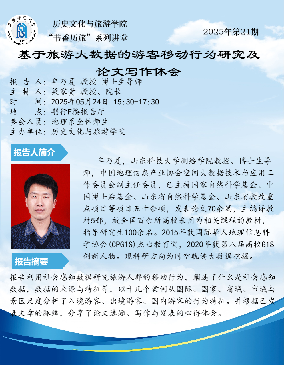 “书香历旅”系列讲堂2025年第21期:基于旅游大数据的游客移动行为研究及论文写作体会