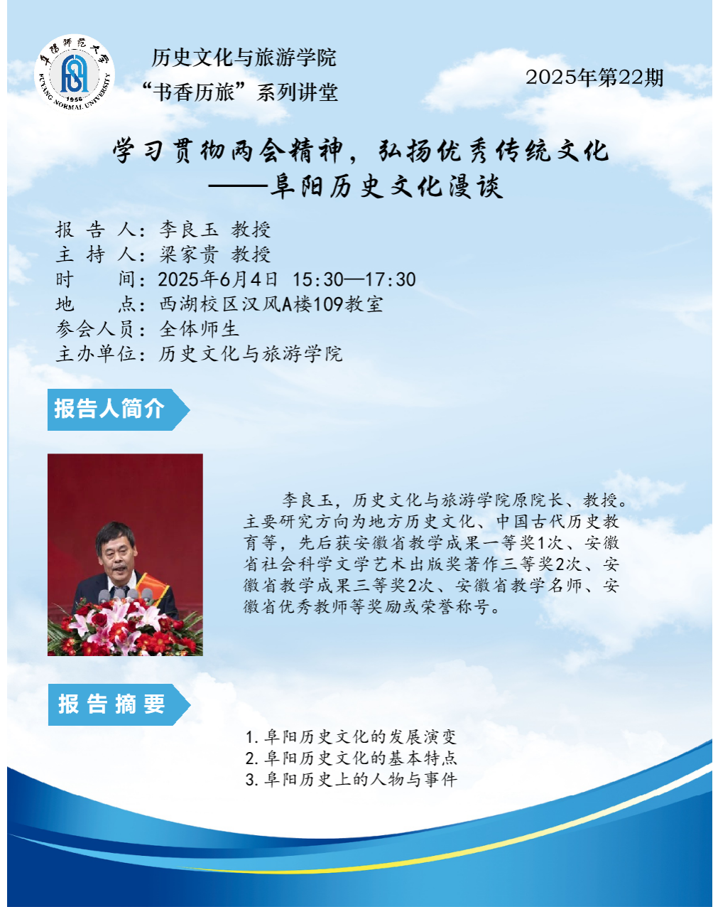 “书香历旅”系列讲堂2025年第23期:学习贯彻两会精神,弘扬优秀传统文化----阜阳历史文化漫谈