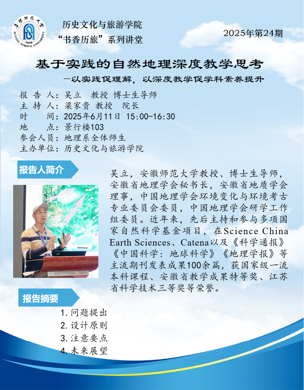 “书香历旅”系列讲堂2025年第24期:基于实践的自然地理深度教学思考----以实践促理解,以深度教学促学科素养提升