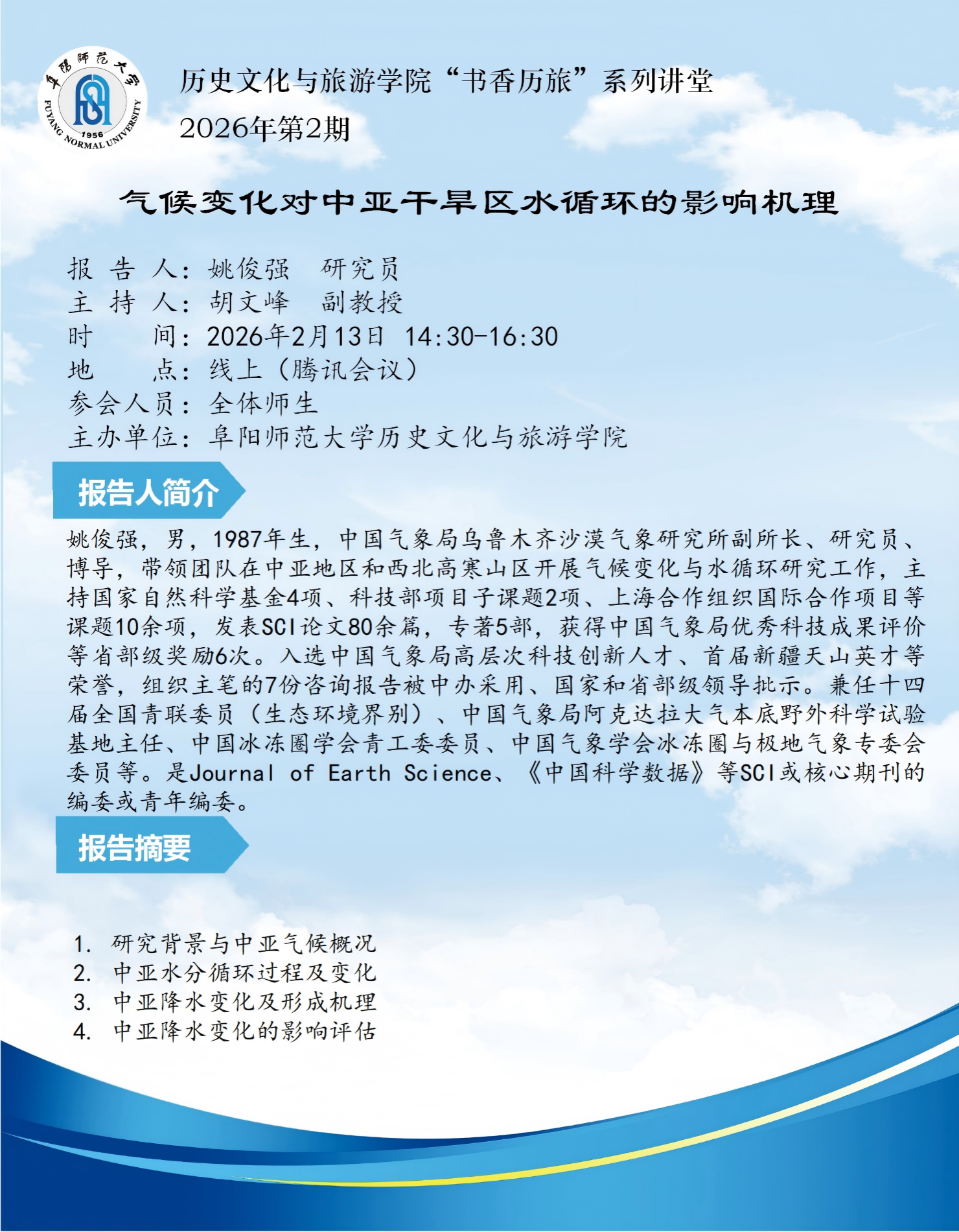 “书香历旅”系列讲堂2026年第2期:气候变化对中亚干旱区水循环的影响机理