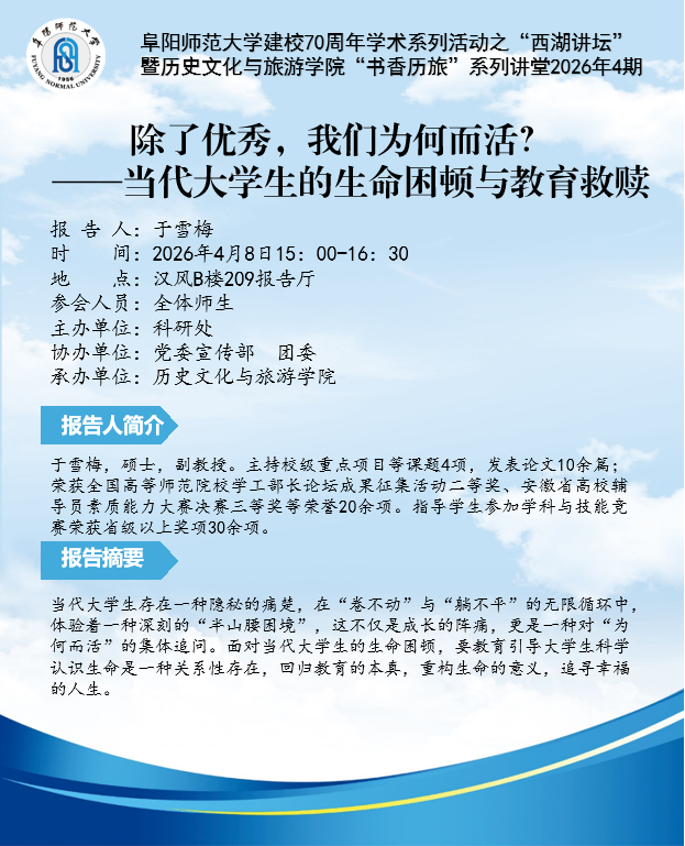 “书香历旅”系列讲堂2026年第4期:除了优秀,我们为何而活?----当代大学生的生命困顿与教育救赎