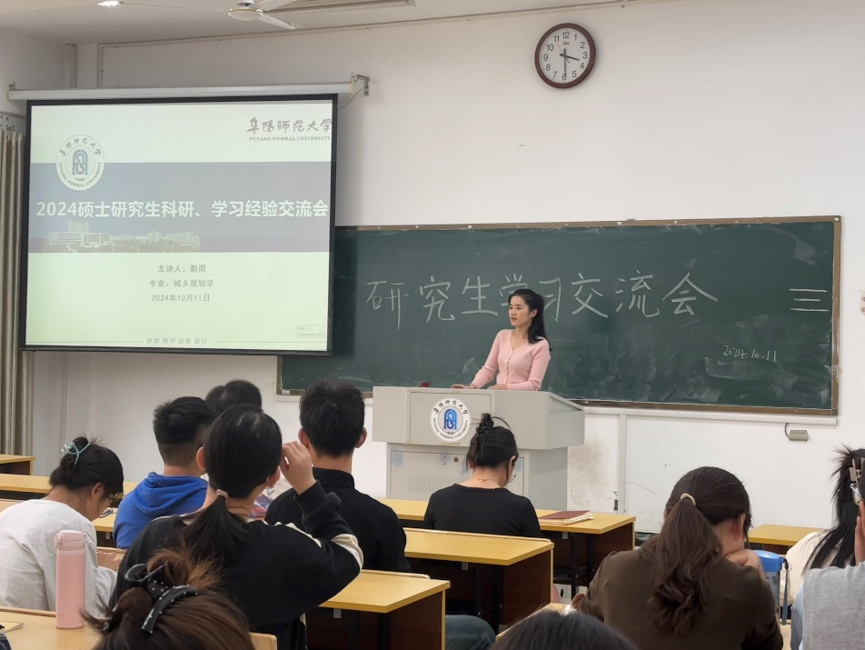 为进一步促进研究生学习与科研经验交流,并有效帮助新生尽快适应研究生生活,学院于10月11日在汉风A楼104教室召开究生学习经验交流会。会议邀请2023级三位优秀研究生赵熠锡、张斌与勤雨作为分享人,全体2024级研究生参会。交流会由2024级城乡规划学专业研究生王宇航主持。