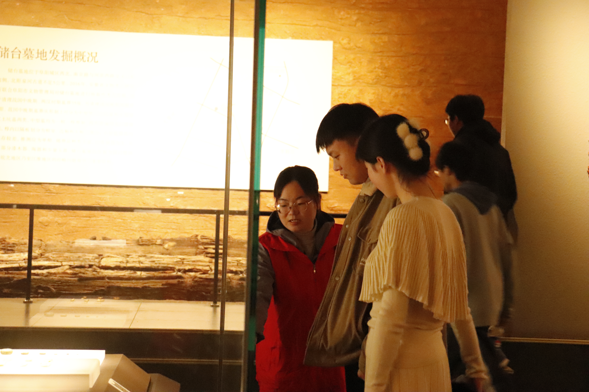 活动期间,30余名研究生志愿者分组上岗,每人定点负责一件馆藏文物的讲解工作。他们结合自身专业优势,以扎实的知识储备和富有感染力的表达,为前来参观的市民提供了专业、生动、细致的讲解服务。从文物背后的历史脉络到文化内涵,志愿者们娓娓道来,引得观众频频驻足聆听。此外,志愿者们还积极协助博物馆维持参观秩序,耐心解答观众咨询,引导文明观展,成为馆内一道亮丽的风景线。