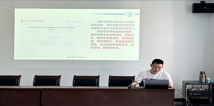 为深入贯彻落实《中共中央国务院关于全面加强新时代大中小学劳动教育的意见》和教育部印发《大中小学劳动教育指导纲要(试行)》的通知等文件精神,培养研究生树立正确的劳动意识,形成科学的劳动观,养成热爱劳动的良好习惯,6月9日上午,马克思主义学院在三里桥校园201会议室举办主题为“新时代高校劳动教育”讲座。讲座由学院教授、研究生秘书于文善主持,胡俊俊老师主讲,学院2021级及2022级全体研究生参加会议。
