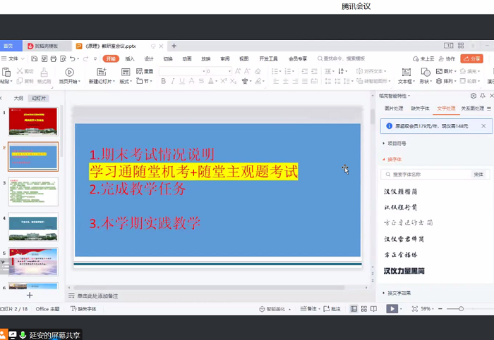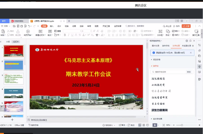 5月24日下午,“马克思主义基本原理”教研室通过“腾讯会议”网络平台召开“马克思主义基本原理”课程期末教学工作会议,马克思主义学院《原理》课教研室全体教师参会,会议由教研室主任杨军博士主持。