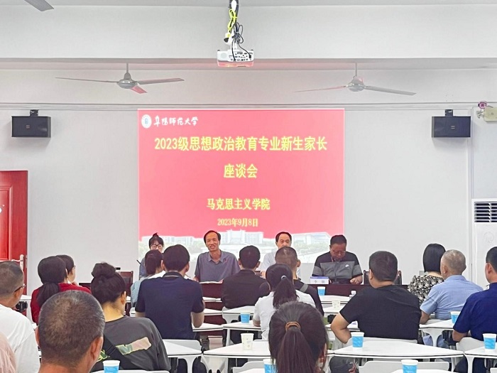 闫成俭介绍了马克思主义学院历史沿革、学科专业发展情况和取得的成绩。李强、宁焱分别介绍了思政专业建设情况和辅导员工作。新生家长任龙在发言时表达了对阜阳师范大学马克思主义学院的信任。