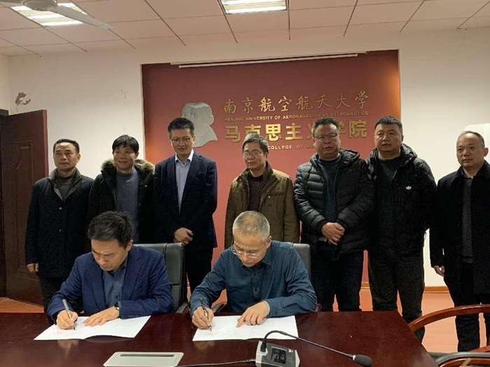 会上,王智向与会人员介绍了南京航空航天大学马克思主义学院的基本情况以及学院在人才培养、科研项目申报、社会服务方面所作出的努力。朱宗友向与会人员介绍阜阳师范大学马克思主义学院的发展历程、办院特色与成果、人才队伍和学科专业建设等情况。双方交流了两院的学科专业发展重点、近年来的思想政治理论课教学改革举措以及研究生教育方面的问题。经友好协商,双方围绕建立多方面全面、长期、紧密的战略合作关系达成一致,并签订协同共建协议。