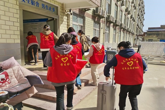 同日,为做好学院转专业学生宿舍搬迁工作,学院学生会和青年志愿者协会的部员们自愿组成迎新队伍参加服务活动。志愿者们分工明确,积极主动为新生搬运行李,为新生解惑释疑、尽心尽责。他们耐心周到、细致入微的服务得到了同学们一致好评。使同学们尽快熟悉并融入到新的学习生活环境,让活力四射的校园更加生机勃勃。