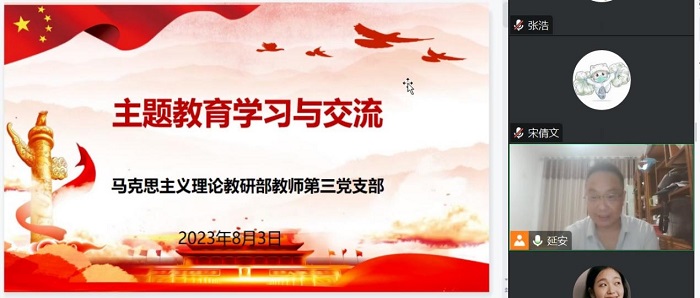 为筑牢支部党员思想阵地,按照学院党委要求,8月3日,马克思主义学院马克思主义理论教研部教师第三党支部通过“腾讯会议”召开线上支部大会,学习交流习近平总书记7月25日至27日在四川考察时的重要讲话精神、习近平总书记关于党的建设的重要思想、习近平在中共中央政治局第六次集体学习时的重要讲话精神。会议由支部书记杨军主持,全体支部党员参加集中学习。