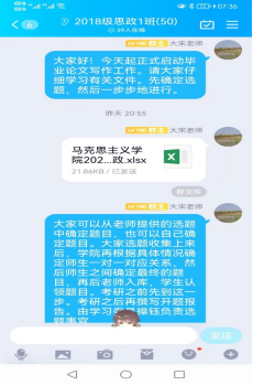 2021年11月份,成立以闫成俭、高思杰为组长的毕业论文写作工作领导小组,制定《马克思主义学院2022届本科毕业生毕业论文工作计划》,遴选夏小华等20位毕业论文指导老师,在师生中进行论文写作工作的宣传动员工作,征集毕业论文选题,并确定师生一对一指导关系,完成选题入库工作。之后指导老师与学生沟通交流,指导学生撰写开题报告,预计于1月14日之前完成开题报告的入库工作。
