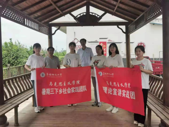 为学习贯彻习近平总书记在庆祝中国共产党成立100周年大会上的重要讲话精神,弘扬伟大建党精神,7月16日,马克思主义学院理论宣讲实践团由党总支书记高思杰和工会主席杨军老师带队,前往阜阳市阜南县濛洼蓄洪区开展了小规模、互动式、有特色、接地气的理论宣讲实践活动。