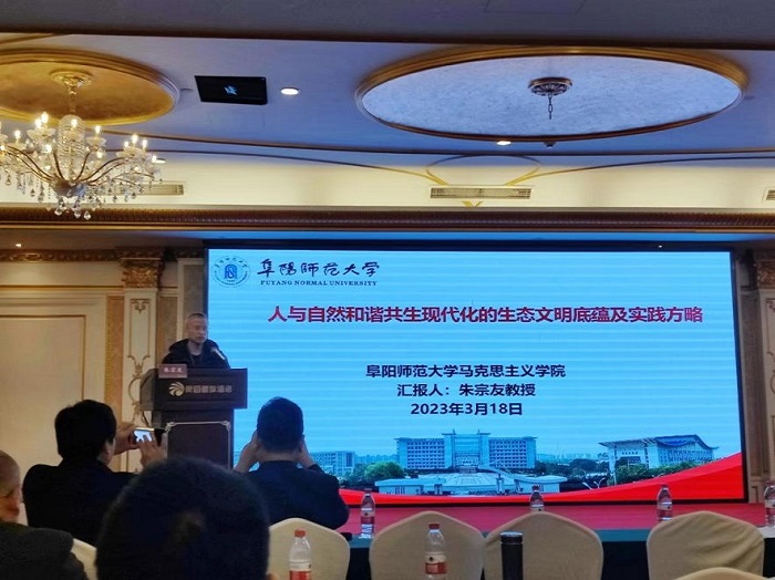 会上,朱宗友作了题为《人与自然和谐共生现代化的生态文明底蕴及实践方略》的大会发言。主要从人与自然和谐共生现代化的生态文明底蕴、逻辑必然和实践方略三方面进行阐述,发言得到与会专家学者和青年学生的关注和好评。