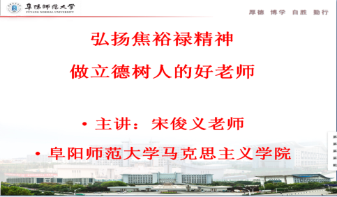 宋俊义从“焦裕䘵生平事迹介绍、焦裕禄精神内涵,以及弘扬焦裕禄精神、做立德树人好老师”三个方面开展学习辅导,要求全体教师党员要学习“亲民爱民、艰苦奋斗、科学求实、迎难而上、无私奉献”的焦裕禄精神,确立正确的信仰,守初心、担使命,热爱本职工作,具备高尚师德,以学生为中心立德树人,履行自己的社会责任,努力为国家发展培养优秀人才。