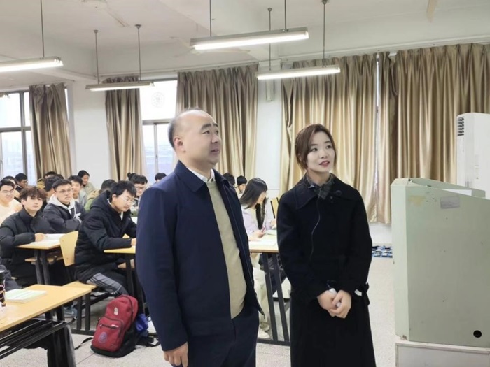 代教授听取了青年教师郭以莎的“思想道德与法治”课程。课后,专家深入师生,了解高校思想政治理论课组织情况,并通过线上问卷调查了解学生对学校思政课教师教学的满意度,进一步了解青年学生思想政治动态,掌握思政课堂教学真实情况,持续提升思政课的思想性、理论性、针对性,推动思政课讲深讲透讲活。在交流过程中,代教授充分肯定郭以莎老师的授课,他认为郭以莎老师的课程教学设计合理,教学内容精准,教学组织规范,教学资源丰富,课堂气氛较好,并对课堂教学质量提升提出改进意见。