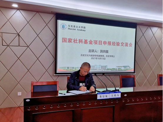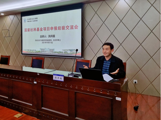 为进一步做好我院国家社科基金项目的申报组织工作,全面提高我院国家社科基金项目申报的数量和质量,10月13日下午4:00,马克思主义学院于正行楼1302召开国家社科基金项目申报经验交流会暨动员大会。会议由朱宗友副院长主持,特邀历史文化与旅游学院副教授、历史学博士洪共福主讲,马克思主义学院教师参加会议。