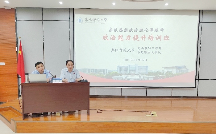 为深入学习贯彻习近平新时代中国特色社会主义思想和党的二十大精神,深入学习习近平总书记关于教育的重要论述和指示批示精神,推动学校师德师风建设常态化、长效化,切实提升我校思政课教师政治能力,7月25日至27日,阜阳师范大学思政课教师政治能力提升专题培训在西湖校区化工楼二楼报告厅有序开展。培训由校党委教师工作部和马克思主义学院承办,主要内容有政治理论培训、师德师风培训、思政课教学培训以及研讨交流。