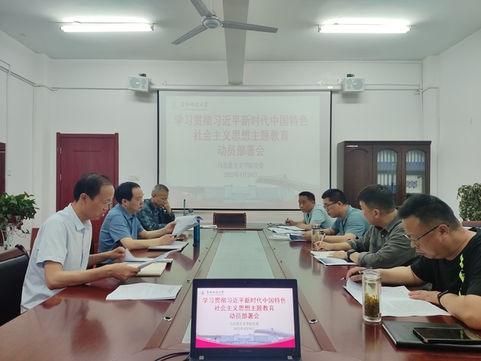 4月20日,马克思主义学院党委在三里桥校园马克思主义学院211会议室召开学习贯彻习近平新时代中国特色社会主义思想主题教育动员部署会,党委委员、各党支部书记参加会议。会议由学院党委书记高思杰主持。