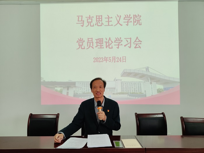 为深入推进学习贯彻习近平新时代中国特色社会主义思想主题教育扎实开展,5月24日下午,马克思主义学院在三里桥校园召开党委理论学习中心组(扩大)学习会,开展主题教育专题理论学习。学院党委书记高思杰带领全院教师党员学习习近平总书记关于调查研究的重要论述摘编、学习习近平总书记考察安徽重要讲话指示精神,学习习近平总书记在学习贯彻习近平新时代中国特色社会主义思想主题教育在工作会议上的重要讲话。学院党委副书记、院长闫成俭主持。