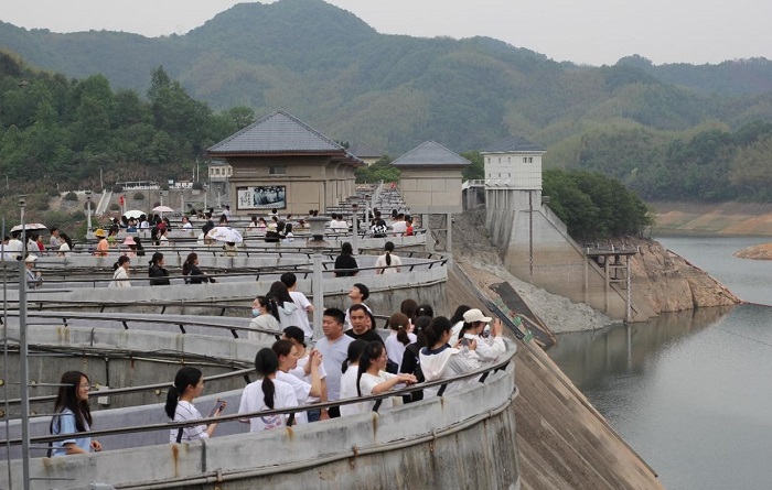 在梅山水库,工作人员详细讲解新中国治淮、梅山水库修建以及水库在农业灌溉、环境保护方面发挥的作用,进一步增强同学们对“绿水青山就是金山银山”发展理念深刻内涵的理解。