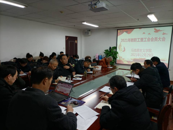 为进一步发挥教职工在学院建设发展中的重要作用,按照中国教育工会阜阳师范大学委员会《关于召开2021年二级教代会的通知》精神,12月29日,马克思主义学院分工会召开工会会员大会。马克思主义学院党总支书记高思杰,党总支副书记、院长闫成俭,正处级干部夏小华,分工会主席杨军和全体教师员工参会,党总支委员、副院长朱宗友主持会议。