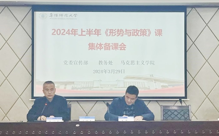 3月29日下午,2024年春季学期“形势与政策”课集体备课会在西湖校区正行楼1302会议室召开。教务处、马克思主义学院等单位负责人及部分二级学院党委(党总支)书记、副书记、专兼职辅导员、任课教师等40多人参加会议。备课会由马克思主义学院院长朱宗友主持。