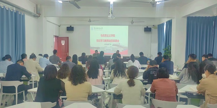 为扎实推进党纪学习教育,按照学校部署要求,4月17日,学院在201会议室召开党纪学习教育动员部署会。全体教职工参加会议,党委副书记、院长朱宗友主持会议。