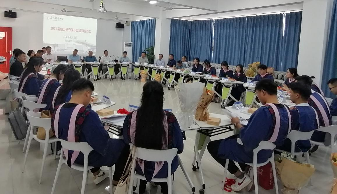5月29日下午,学院于三里桥校区201会议室举行了2024届硕士研究生毕业送别座谈会。学院党委书记朱明山,党委副书记、院长朱宗友,党委委员、副院长夏小华,党委副书记王刚,以及2024届全体毕业生及其导师参会。座谈会由夏小华主持,研究生会协办。