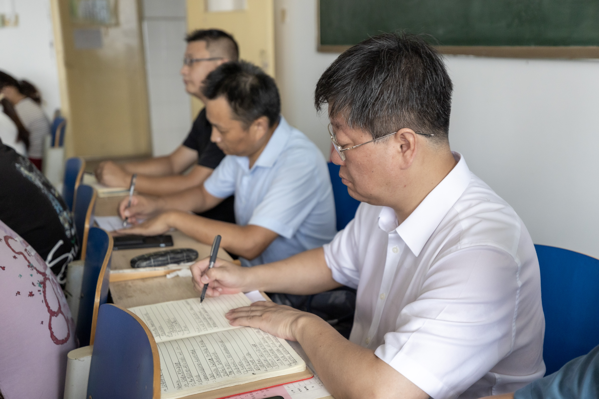 学校党委书记程曦率队来到三里桥校园A楼502教室,听取了赵天老师的《马克思主义哲学》。课上,程曦与同学们一起聚精会神地听课,详细记录课堂教学情况。赵天老师知识脉络清晰,内容富有逻辑,课堂秩序井然,互动效果良好。听课结束后,程曦与青年教师赵天进行了沟通交流,鼓励他要在教学研究、教学方法、教学技能等方面着力用力,努力打造金课程。