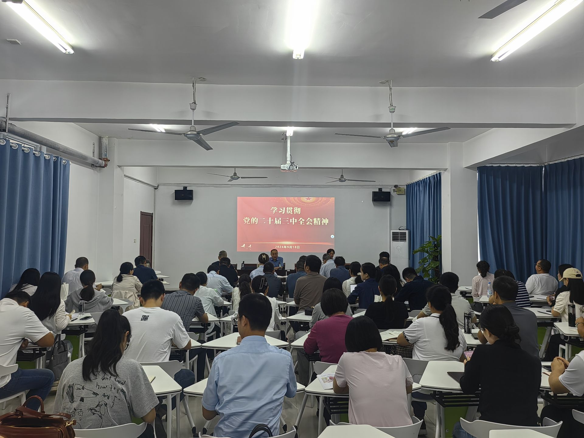 为深入推进学习贯彻党的二十届三中全会精神,根据学校工作安排,9月18日下午,教育学院党委书记李静为马克思主义学院全体教职工进行专题宣讲。宣讲活动由马克思主义学院党委书记朱明山主持。