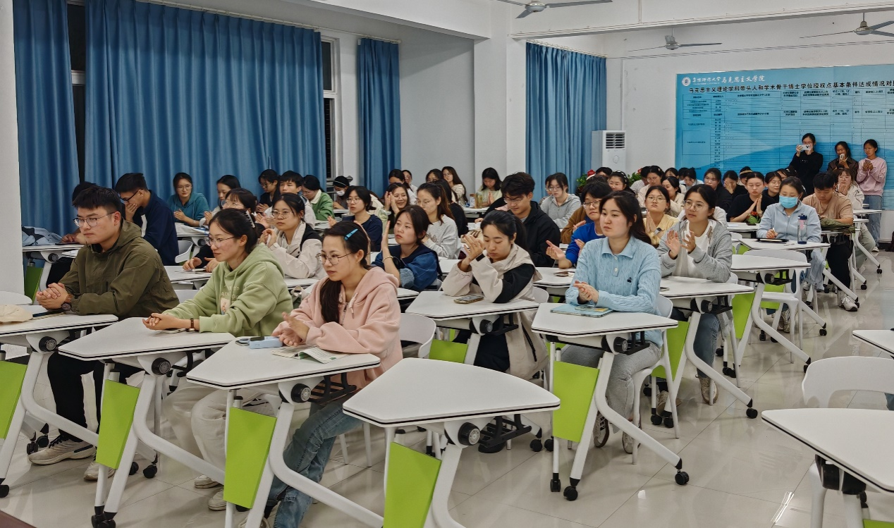 朱宗友首先肯定了近年来学院在考研工作中取得的显著成绩,强调考研对于增加个人经历,提升学历层次、增强就业能力的重要意义,就本专业的考研形势、备考策略、复习方法等多方面进行了详细介绍,为备考学生提供了宝贵的建议和指导。