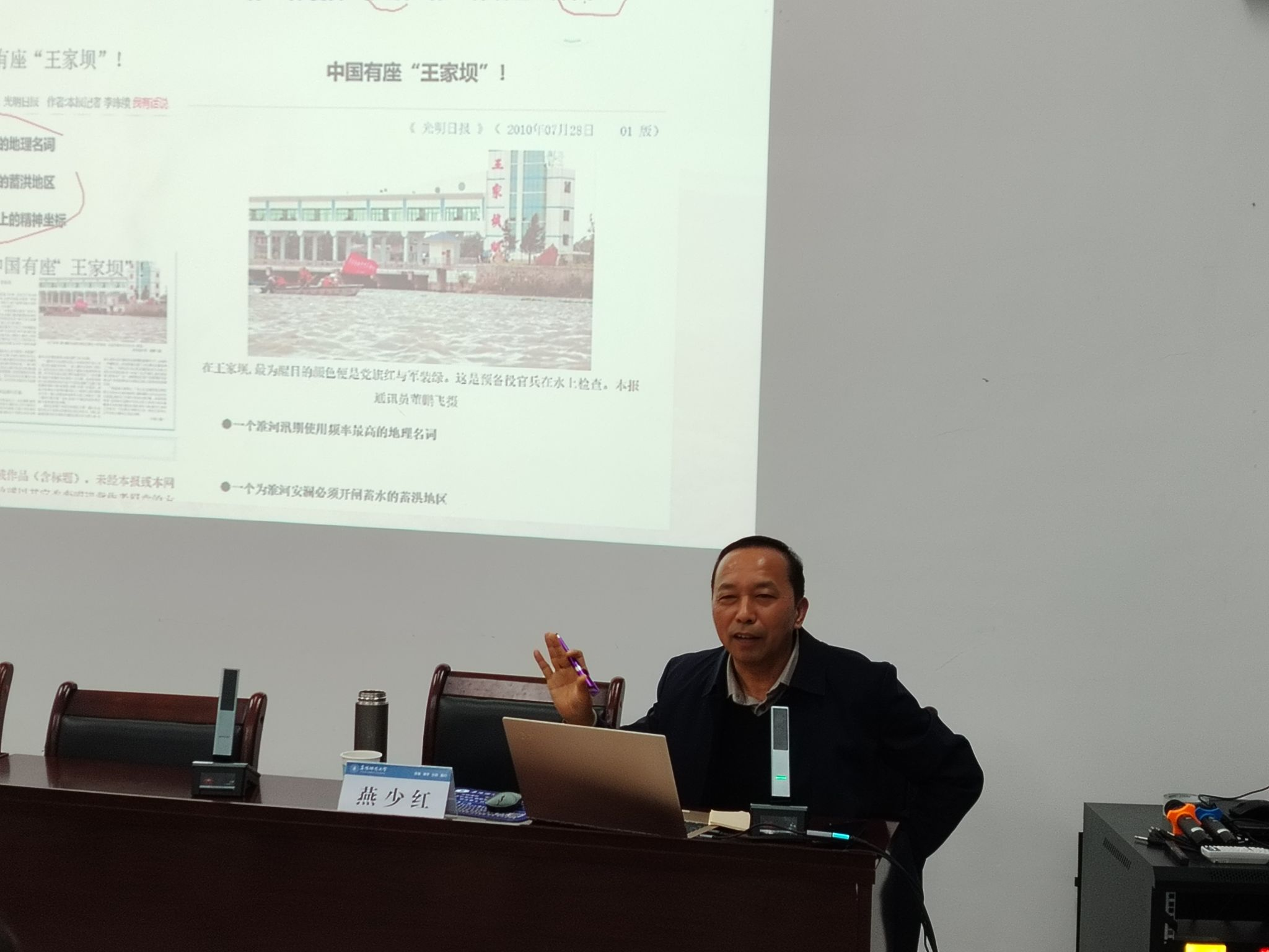 讲座由马克思主义学院、皖北文化研究中心和淮河文化馆主办。讲座结束后,燕少红主任与同学们进行了互动,一一解答了同学们关于王家坝精神的提问。