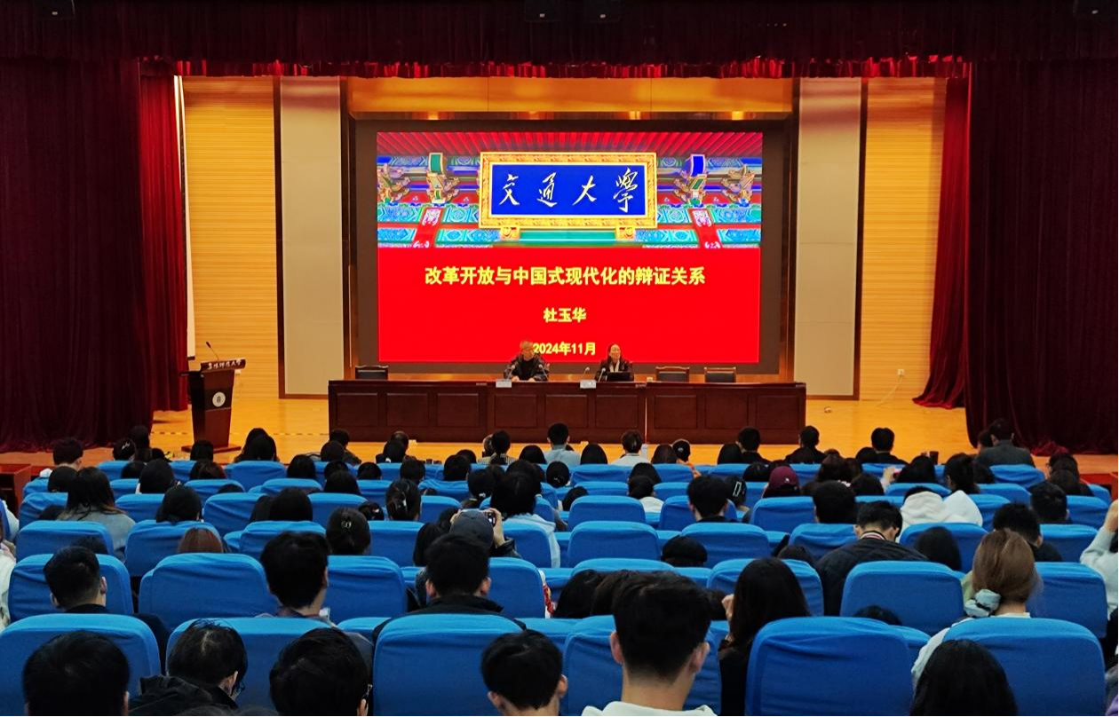 报告会上,杜玉华以“改革开放与中国式现代化的辩证关系”为题,从“改革开放与中国式现代化相互区别、各有侧重”“改革开放与中国式现代化相互联系、相辅相成”“改革开放与中国式现代化统一于中华民族伟大复兴实践”三个方面进行阐述,介绍了二者的区别、联系以及内在统一性。