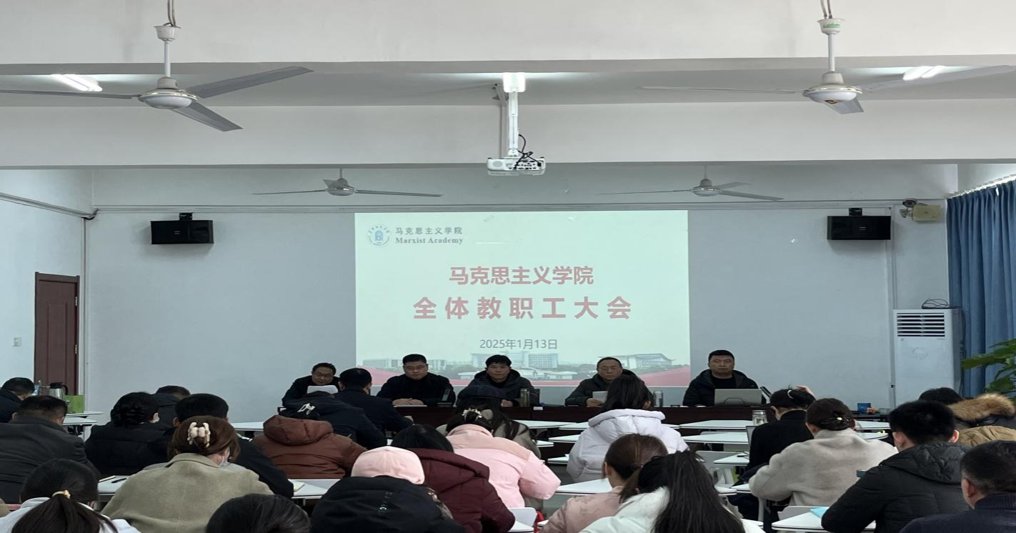为了进一步发挥教职工在学院建设发展中的重要作用,根据《中国工会章程》、《学校教职工代表大会规定》、《阜阳师范大学二级单位教代会工作实施办法》(校党〔2020〕59号)和《关于召开2024年二级教代会的通知》(校工〔2024〕42号)等有关规定,马克思主义学院分工会于2025年1月13日上午在马院201会议室召开2024年度全体教职工大会,会议由马克思主义学院党委书记朱明山主持,院党委委员,纪委书记徐朝东、副院长夏小华、赵永明参加会议。