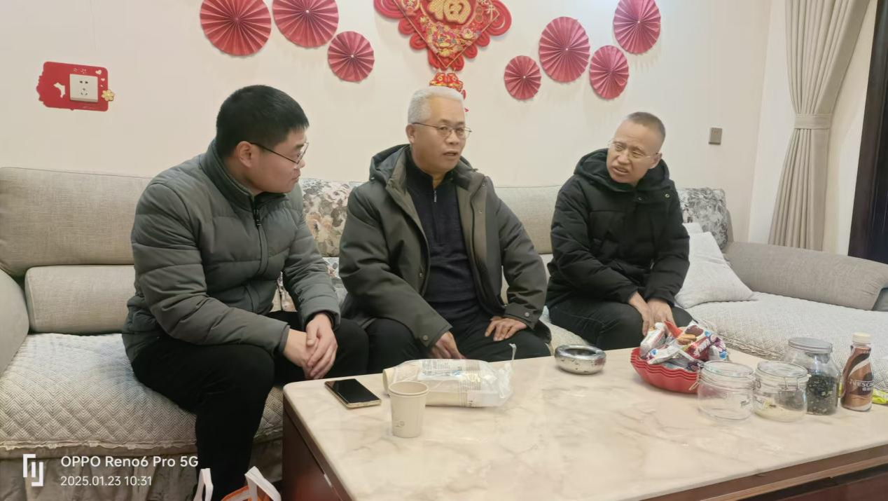 前行不忘躬耕者,薪火相传映初心。在2025年新春佳节到来之际,1月23日上午,马克思主义学院党委书记朱明山、院长朱宗友带队走访慰问王蓉、李振弟等6位退休教师,代表学院向他们送上诚挚的问候和新春的祝福。副院长夏小华、副书记徐朝东和工会主席杨军参加看望慰问。