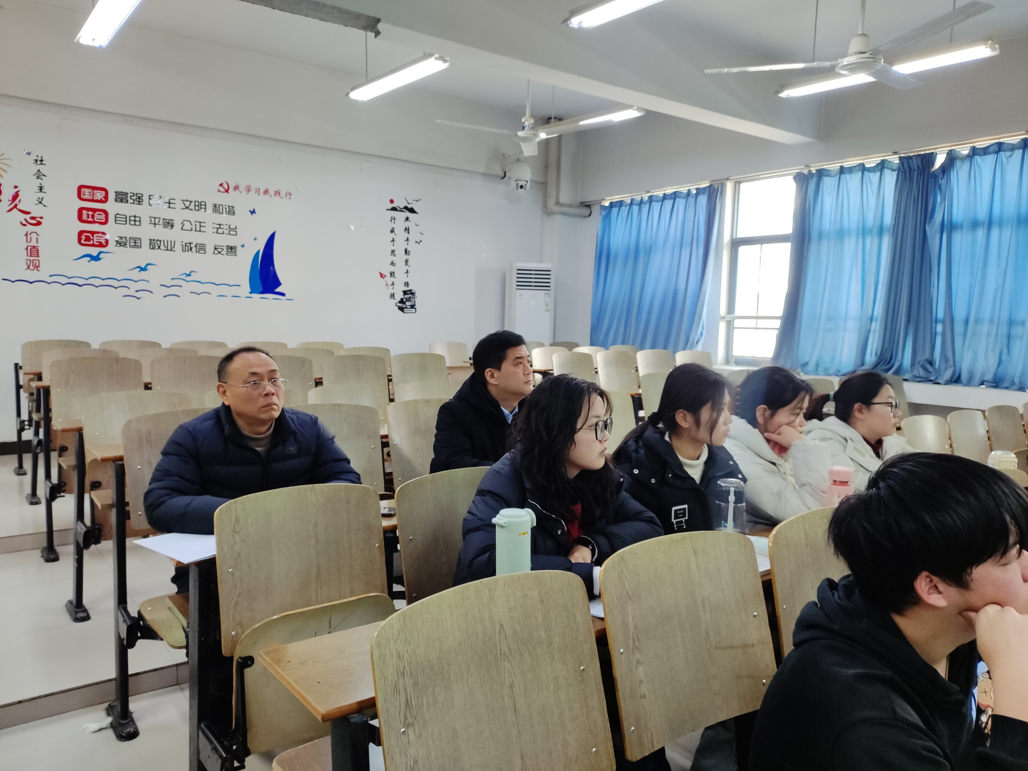 2月27日上午,党委常委、副校长窦贤琨深入思政课堂开展听课活动,听取了高晓颖老师讲授的《思想道德与法治》课程。马克思主义学院党委书记朱明山陪同听课。