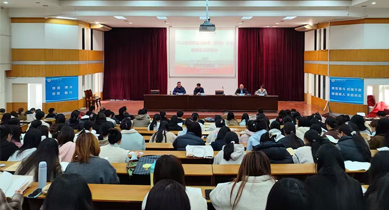 3月12日,马克思主义学院在三里桥校园D楼学术报告厅召开2022级思想政治教育(师范)专业教育实习动员会。动员会旨在为即将踏上实习岗位的学生们确立学习目标,明确实习任务,落实实习要求,确保实习工作的顺利进行。马克思主义学院副院长夏小华、思政系主任李强、思政专业教研室主任李涛、辅导员李慧、全体实习指导教师和229名实习学生参加了动员会,会议由李涛主持。
