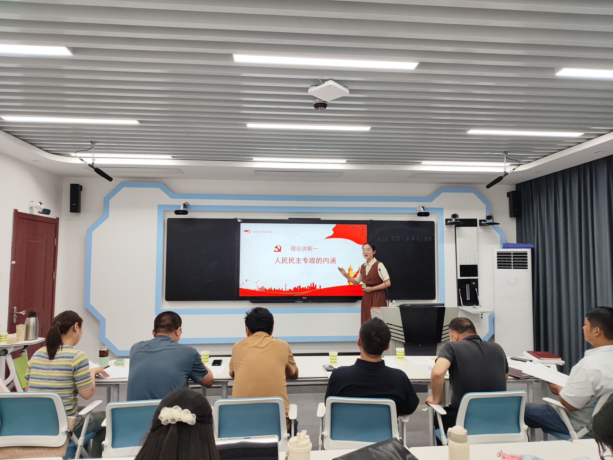 为落实好“三习”工作,提升实习生的教学能力,检验实习生的实习成效,6月20日,马克思主义学院在305智慧教室举办2025年2022级实习展演授课赛。马理论教研部主任李元旭、思政教研室主任李涛、纲要教研室主任梁华玮、专硕教研室主任陈甲甲、新思想教研室陈宏建和宁小双老师出席授课赛并担任评委。比赛由青年教师汝晴主持。
