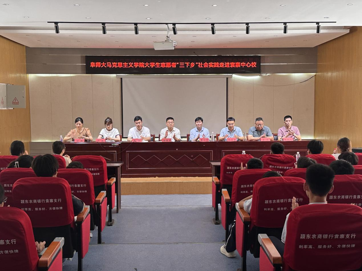 为引导学生在服务乡村振兴、投身基层建设的生动实践中坚定信念、增长本领、作出贡献,2025年7月2日,马克思主义学院党委书记夏小华,副书记徐朝东,思政系主任李强等带领“三下乡”实践团队,赴阜阳市颍东区袁寨镇中心学校开展大学生志愿者“三下乡”社会实践合作交流。