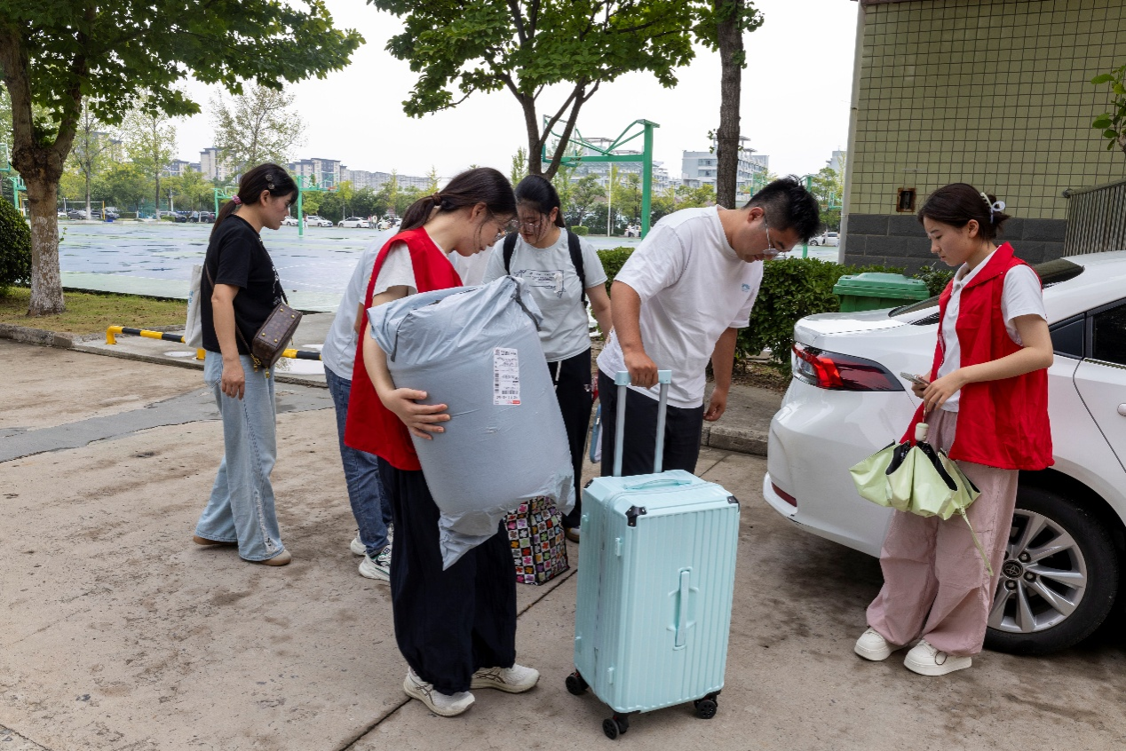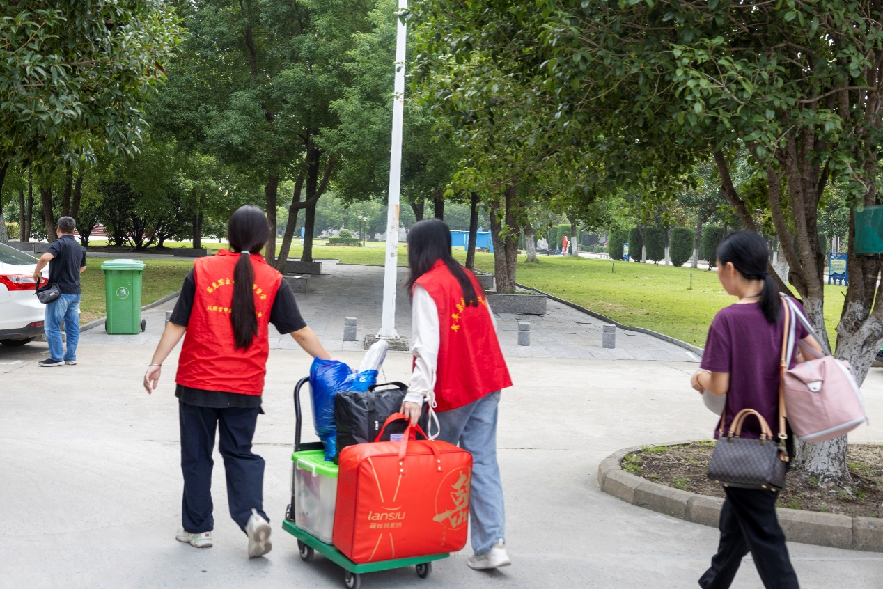在迎新现场,身着“志愿红”马甲的学生志愿者们格外亮眼,他们以“搬得了行李、暖得了人心”的实际行动,成为新生从“校门口”到“宿舍门”的“贴心摆渡人”,让初入校园的新生及家长感受到浓浓的学院温情。