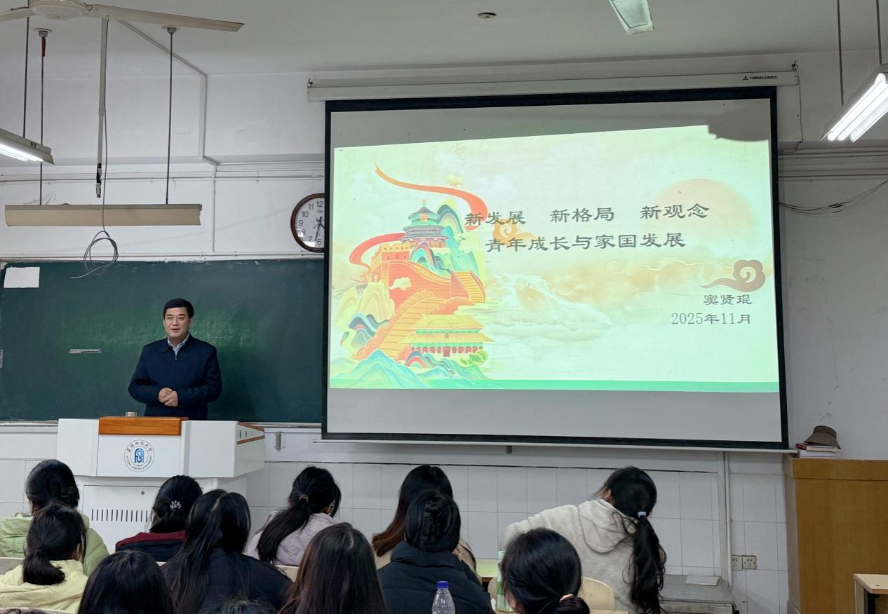 为深入学习贯彻落实习近平总书记对学校思政课建设的重要指示精神,全面落实立德树人根本任务,推进党的创新理论最新成果进教材、进课堂、进头脑,11月19日下午,党委常委、副校长窦贤琨走进我校西湖校区景行楼211教室,为文学院2024级网络与新媒体1班、2024级新闻学1班的同学们作题为《新发展新格局新观念青年成长与家国发展》的专题授课。马克思主义学院院长朱宗友,教师代表段梅梅、王莹莹参加活动。