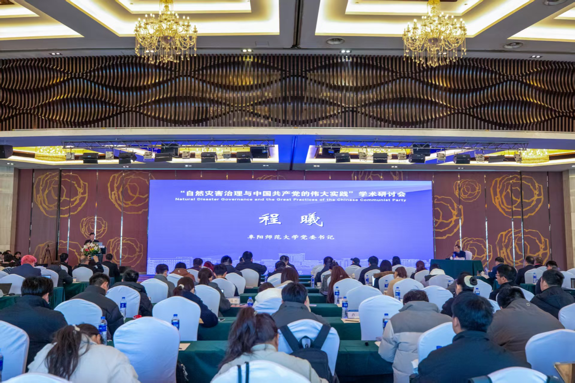 为深入学习贯彻习近平总书记关于防灾减灾救灾的重要论述,总结中国共产党领导自然灾害治理的独特理念与成功实践,12月6日,“自然灾害治理与中国共产党的伟大实践”国际学术研讨会在阜阳师范大学成功举办。会议由中国高等教育学会马克思主义研究分会、中国李大钊研究会、阜阳师范大学主办,阜阳师范大学马克思主义学院、阜阳师范大学中共党史党建研究院承办,《当代中国马克思主义研究》编辑部、《毛泽东邓小平理论研究》编辑部、《李大钊研究》编辑部、安徽省铸牢中华民族共同体意识理论研究智库、安徽省中国特色社会主义理论体系研究中心阜阳师范大学研究基地协办。校党委书记程曦出席并致辞。开幕式由阜阳师范大学校党委常委、副校长卢少求主持。