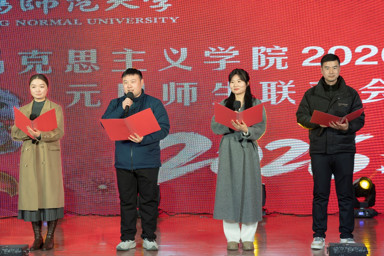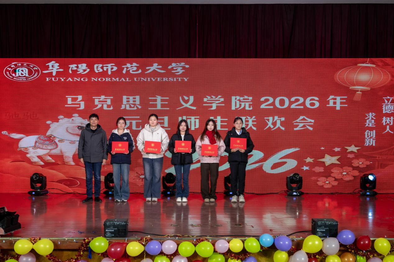 为丰富师生校园文化生活,凝聚奋进力量,12月27日,马克思主义学院2026年元旦师生联欢会在西湖三区D楼报告厅举办。学院党委书记夏小华、副书记徐朝东与全院师生欢聚一堂,在欢声笑语中回望旧岁硕果,共迎新年到来。
