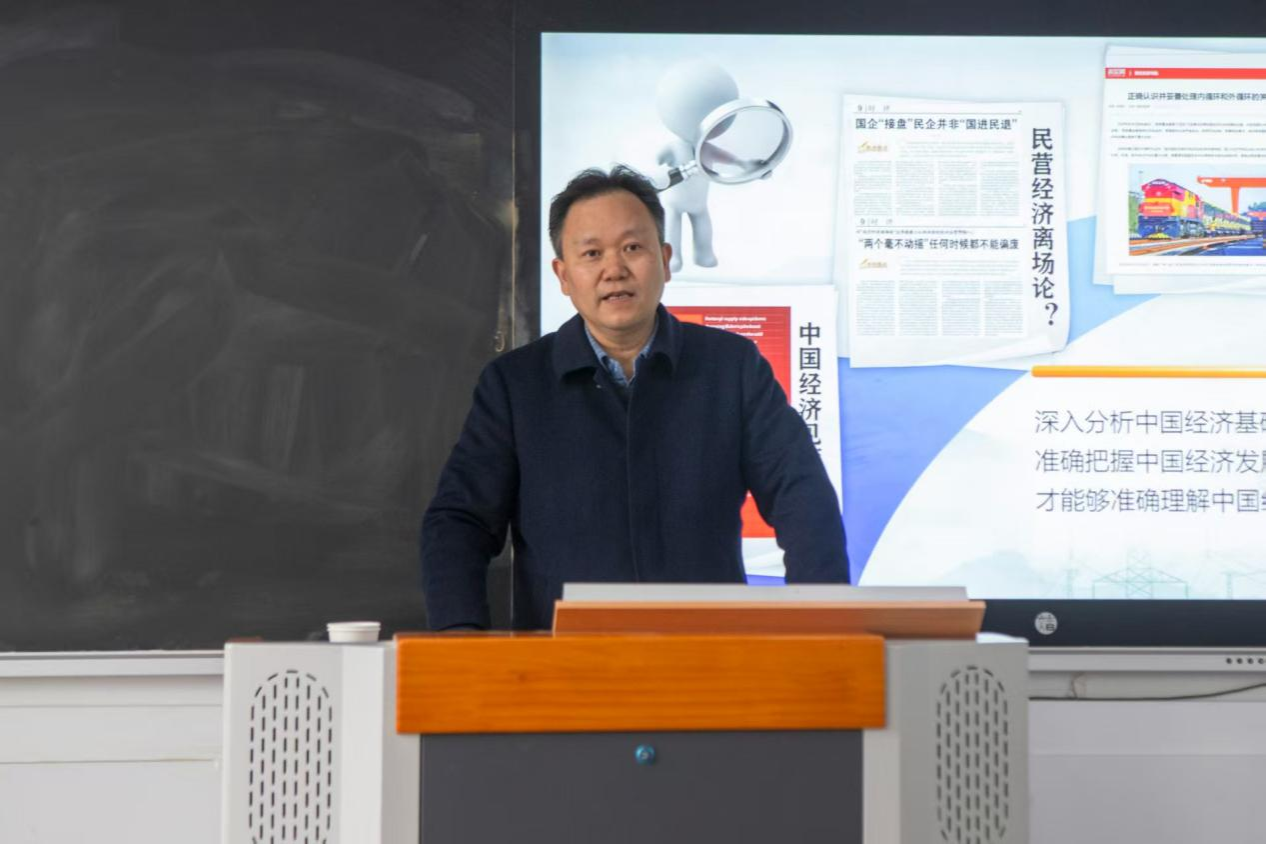为深入学习贯彻落实习近平总书记对学校思政课建设的重要指示精神,全面落实立德树人根本任务,推进党的创新理论最新成果进教材、进课堂、进头脑,1月5日下午,校党委副书记、校长方廷勇走进我校西湖校区景行楼210教室,为马克思主义学院2023级思想政治教育4班的同学们作题为《正确认识中国经济热点问题》的专题授课。马克思主义学院副院长赵永明及教师代表方荟、段梅梅参加活动。
